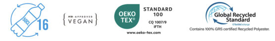 - Tejido Principal: 100% Poliéster reciclado post-consumo.