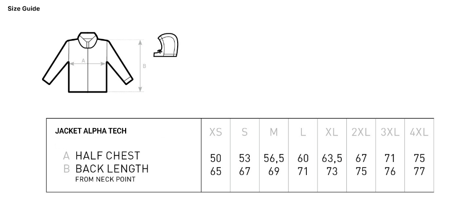 Para asegurar un ajuste óptimo, te recomendamos medir una chaqueta que ya tengas y comparar las medidas con la siguiente tabla. Las medidas están expresadas en centímetros.