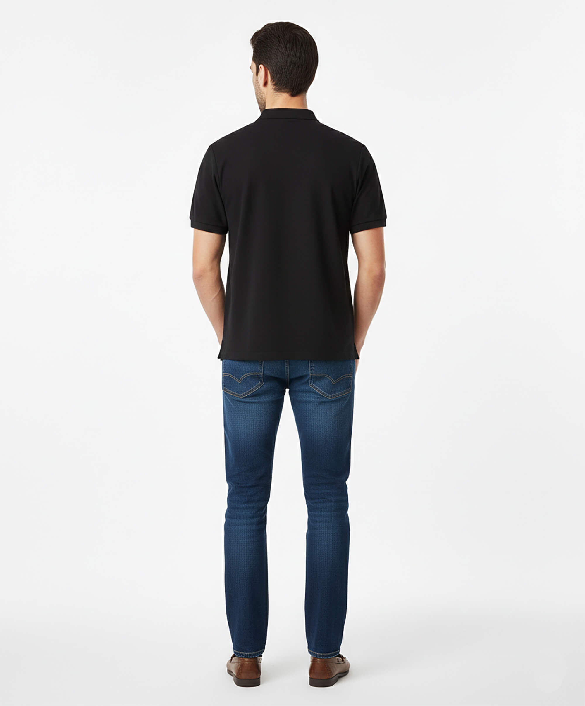 Unos chinos beige, unos vaqueros oscuros, un pantalón de traje gris. El azul navy funciona con todo porque no compite con nada. Es el polo que coges cuando no quieres complicarte y siempre quedas bien.
