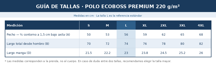 El Polo EcoBoss Sea Blue está confeccionado en algodón 100% orgánico ecológico cultivado sin pesticidas ni fertilizantes químicos. Un algodón peinado de 220g/m² que te da la solidez y el tacto que esperas de un polo premium, con la diferencia de saber exactamente cómo ha llegado hasta ti — sin atajos, sin compromisos.